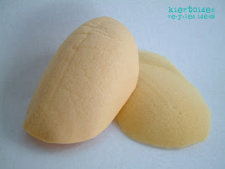 I'm feeling fluish again, so I'm writing a very short English version, sorry! These shoulder pads were free at local flea market and they got a new life as sponges. I removed the fabric that was covering them, and inside there was foam. My sponges weren't pretty, but they were good for cleaning. After cleaning my stove they were so greasy and dirty, that I just have to throw them in the bin.